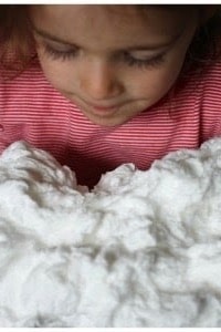 Place the cornstarch in a bowl and dollop the shaving cream on top of it using a spoon. For a splash of fun, add a few drops of food colouring to the bottom and stir everything together. The mixture will feel a bit like grated cheese and at this point -get the children to help you squeeze it to mix it. It will form a ball, similar to a ball of dough. If it’s too crumbly and won’t stick together, add some shaving cream. If the doughy ball is too sticky, add some cornflour. Eventually, it will take on the exact texture of snow. Try sculpting a snowman, make a snow fort, or just enjoy the feeling between your fingers.