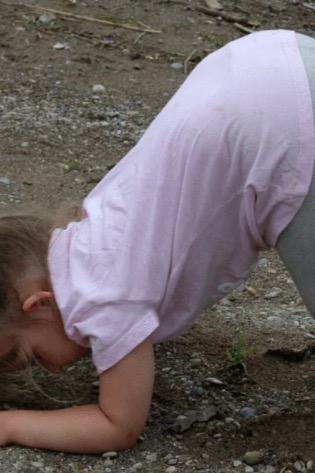 Be the sunshine: Lay flat on your tummy. Place your hands under your shoulders. Lift your chest off the floor. Look up. Hold.