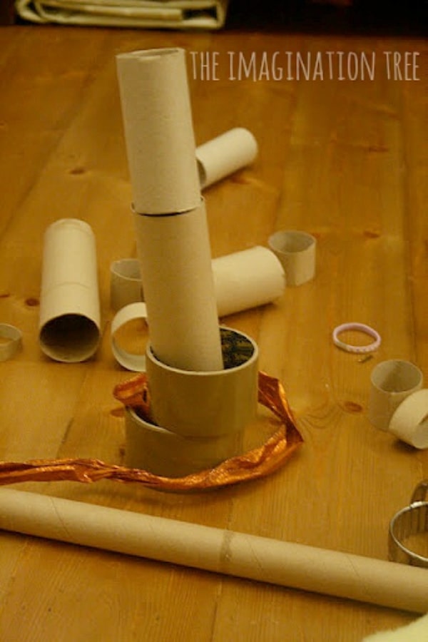 - Cardboard rolls (from paper towels, tape, toilet rolls, and wrapping paper)