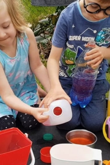 The Tuff Tray activity: Allow your children to experiment with color while learning about volume measurements and developing their motor skills.