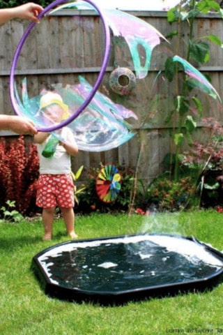 - A large bubble wand (this can be store-bought or you can make a hula hoop bubble wand or even a string bubble wand)