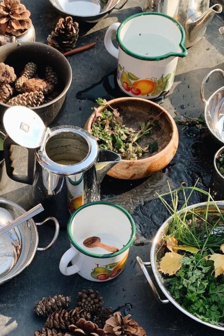 The Tuff Tray activity: Create a Harry Potter-style potions class on a Tuff Tray in your backyard, encouraging children to interact with nature and teaching them about safety with plants and herbs.