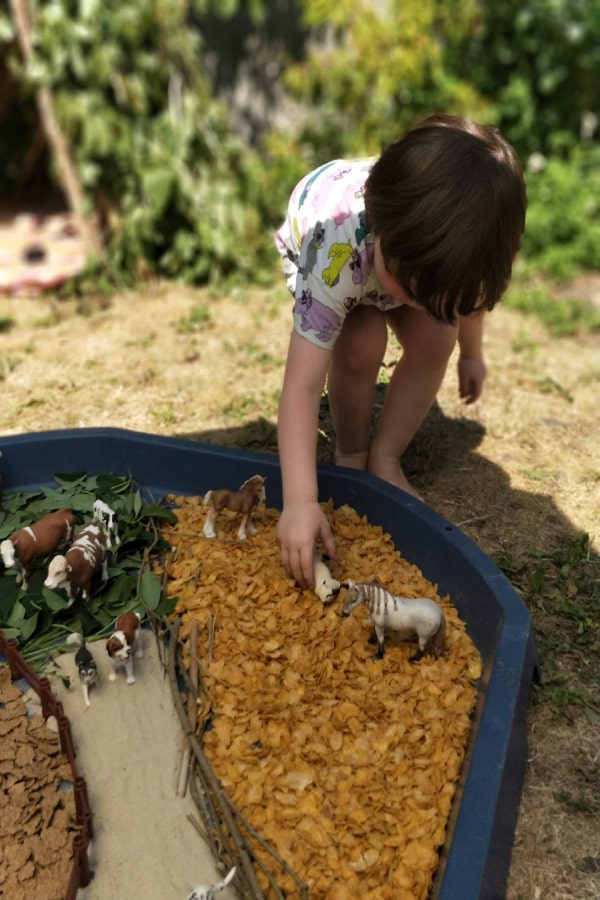 The Tuff Tray activity: Get toddlers thinking creatively by having them build their very own mini farms from toys and materials found around the home and garden.